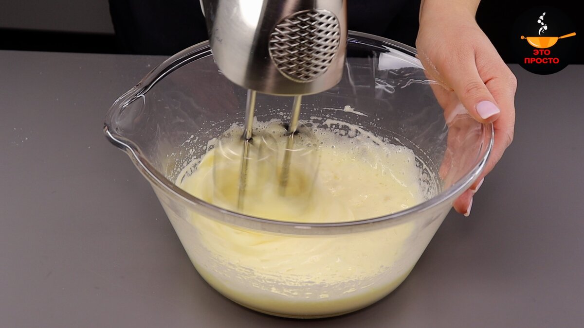 Сегодня будем готовить простой пирог «Вулкан». Такой нежный, вкусный, тесто похоже на кексовое, а внутри творожная начинка, в которую можно добавлять любые ягоды, фрукты или варенье. СПОСОБ ПРИГОТОВЛЕНИЯ: В миску разбиваем 2 яйца, добавляем щепотку соли, 80 г сахара. Взбиваем миксером до посветления массы и растворения сахара. Яичная масса получается воздушной и оставляет след на поверхности. Теперь отправляем сюда 200 г сметаны и смешиваем до однородности. Высыпаем 180 г просеянной муки, 10 г разрыхлителя и на слабой скорости миксера смешиваем сухие и жидкие ингредиенты вместе. Добавляем 2 ст.л. растительного масла без запаха и вмешиваем его в тесто при помощи лопатки. По консистенции тесто получается достаточно густое, как тесто на оладьи. А теперь быстренько приготовим творожную начинку. Для этого 350 г творога смешиваем с двумя яйцами, ванильным и белым сахаром, а также манной крупой. Пробиваем всё погружным блендером до кремообразной консистенции. Я положила манки 2 ст.л., вам мо