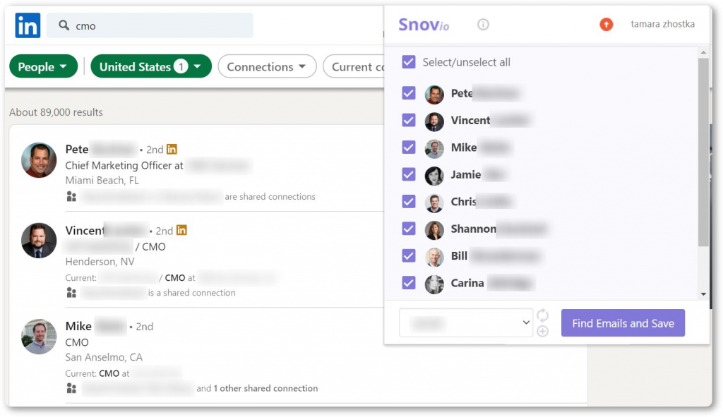 Будучи универсальной CRM для холодного аутрича, Snov.io предлагает один из лучших на рынке поисковиков электронной почты для LinkedIn — LI Prospect Finder, который может извлекать адреса электронной почты из профилей LinkedIn за считанные секунды.