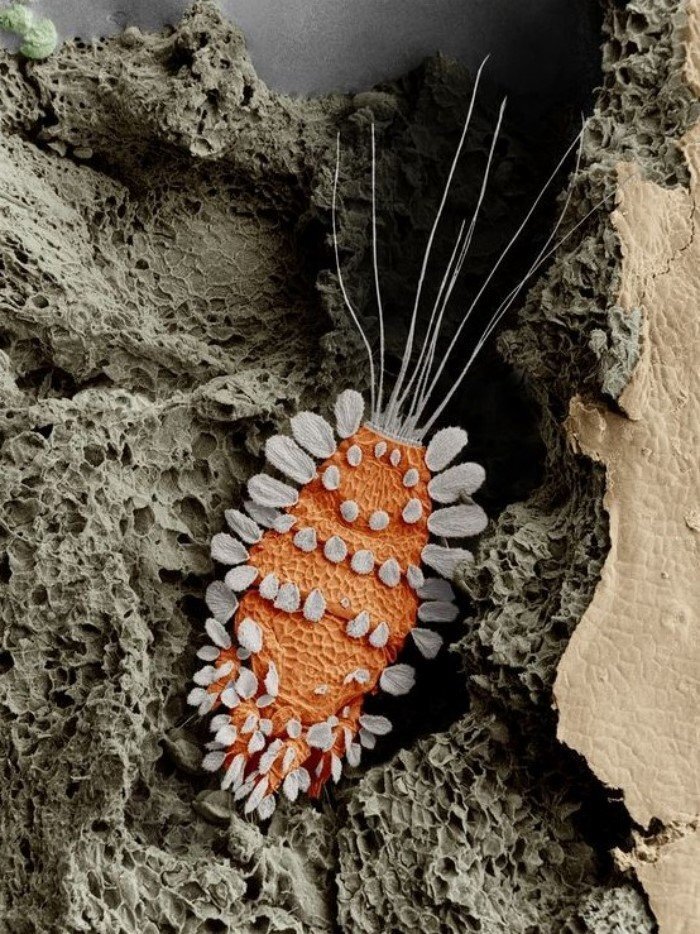 Вы наверняка не раз видели в интернете страшные микроскопические фотографии клещей,когда они похожи на каких-то диких монстров из фильмов ужасов- павлиний клещ, красивый, но важный вредитель тропических цитрусовых. К павлинам этот клещ не имеет никакого отношения. Просто он яркий и имеет щетинки, похожие на павлиньи перья, кстати, эти гривы он использует для защиты от хищников — он использует их как хлыст. Павлиний клещ — паразит цитрусовых. В тропиках с этим борются фермеры.