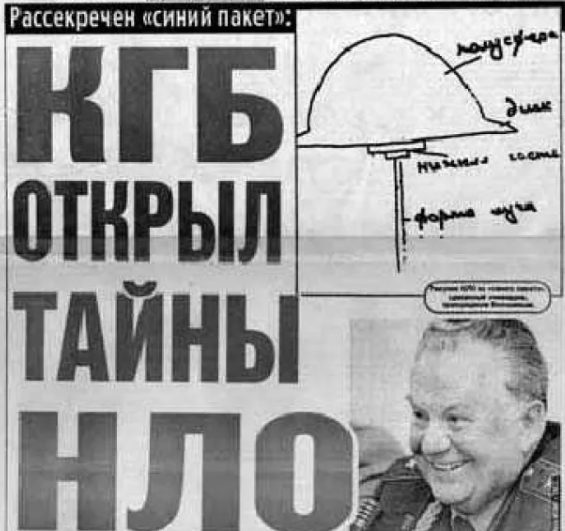 В обязанности Синиц она входила отслеживании публикаций в иностранной прессе, поэтому он принес Андропову перевод статьи из журнала Штерна а случаев Петрозаводские. Глава Кгб внимательно изучил материал, потом вынул и стала папку синего цвета и предложил Синицыну ознакомиться с ее содержимым. В этой папке находились рапорты офицеров контрразведки, а встреча самого. Андропов попросила отвести все материалы представителю Военной промышленной комиссии Советского Союза Кириленко, а тот, свою очередь, оставил документ у себя. Через непродолжительное время по приказу Андропова была разработана программа, чтобы каждый военнослужащий докладывал обо всех случаях наблюдения Нло. Наиболее интересные сведения попадали в синюю папку. В 1991 году по запросу летчика-космонавта Павла Поповича, тогдашнего президента Всесоюзной уфологической ассоциации, синяя папка была передана В ее распоряжении там находились 124 страницы печатного текста, рапорты, объяснительные записки, доклады, посвященные встречам с неопознанными объектами. к примеру, рапорт капитана Черникова, прапорщика Волошина и рядового. держа его, говорят о том, что оно представляет собой диск диаметром 4-5 метров с полусферы. наверху он ярко светится, беззвучно передвигается, иногда опускается и зависает над землей.