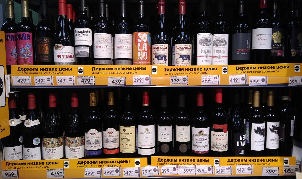 Поразительно, но на фото внизу в правом углу можно увидеть вино из Бордо по акции всего за 299,99 руб вместо 449,99 руб: