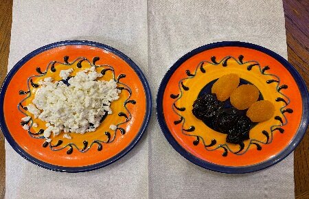 Возьмите готовый творог (на ваш вкус, который вы любите), курагу, чернослив.