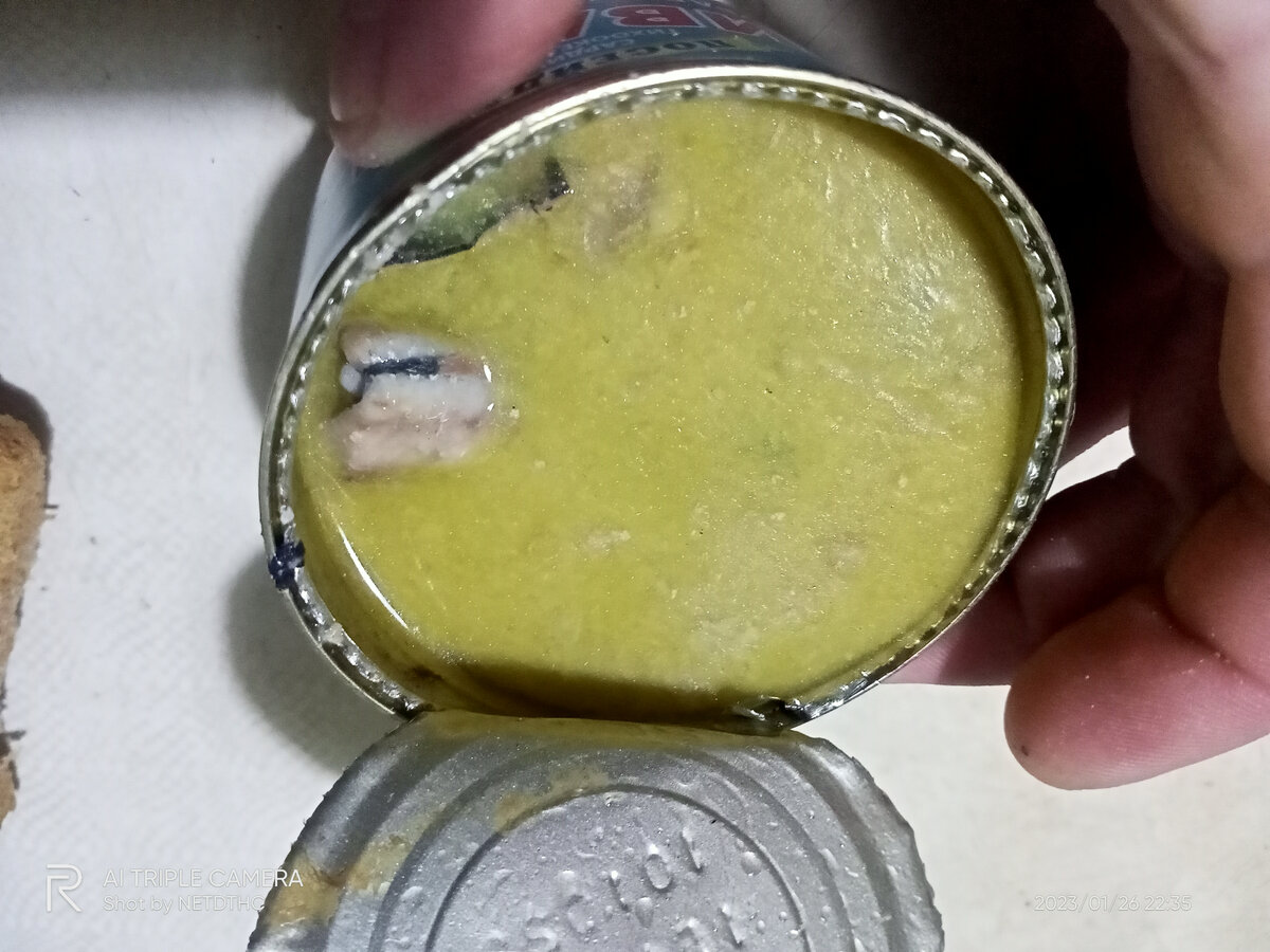 рыбы нету особо. Одна юшко. Вылил юшку; кусочки рыбы только на дне, они мелкие и разломанные: Но ладно мелкие - х**н бы с ними.. Треть банки рыба, а две трети - йушко - это чо, норм, что ли? Конечно, нет. Посмотрел - на банке указана только общая масса нетто. А должна быть указана и масса основного продукта. А основной продукт - это рыба. А производитель кто? Известно, кто: "Южморрыбфлот". Произведено по заказу ТМ "Посейдон". Ну чо тут скажешь.. "Посейдон", ты - г****н. Для такого соотношения массы рыбы и юшки 54 р. - это дорого. Потому что за 79 уже рыбы нормально, как и положено, и куски больше. Да и заметно вкуснее консервы (хотя тоже из мороженого сырья). В который раз убеждаюсь, что всегда нужно болтать банку перед покупкой. Так-то хоть приблизительно определить можно процент основного продукта. Ну и на этикетке должно быть указана масса основного продукта тоже.