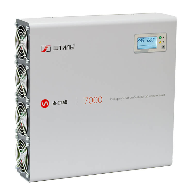 Инверторный стабилизатор напряжения Штиль ИнСтаб IS7000 — это стабилизатор нового поколения, который имеет двойное преобразование входного напряжения без искажения синусоиды и колебания частоты электрического тока. Благодаря этому преимуществу обеспечивается беспрерывное корректирование сетевого напряжения в довольно широком диапазоне значений, от 90 до 310 Вольт. Поэтому если в доме часто скачет напряжение от 100 до 300 Вольт, то стабилизатор Штиль ИнСтаб IS7000 именно то, что нужно. Данную модель стабилизатора удобно размещать как в горизонтальном, так и вертикальном положении на стену. Внутри стабилизатора стоит уникальная на сегодняшний день электронная защита от всевозможных аварий и помех. Есть и не менее популярная функция самовосстановления стабилизатора. Мощность стабилизатора напряжения Штиль ИнСтаб IS7000 порядка 7 кВт, однако здесь всё зависит от входящего напряжения. При сильной просадке, ниже 180-160 Вольт стабилизатор способен выдать полноценные 5 кВт мощности. Поэтому
