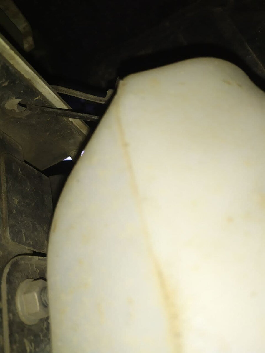 — Бачок омывайки следует притянуть стяжками сверху (см. фото) в передней части бочка под фарой за рамку (см. фото) и третье место (в силу зимы без фото) находится внизу под пыльником бампера и локером — стягивается широкой стяжкой. — Кронштейн насоса ГУРа.