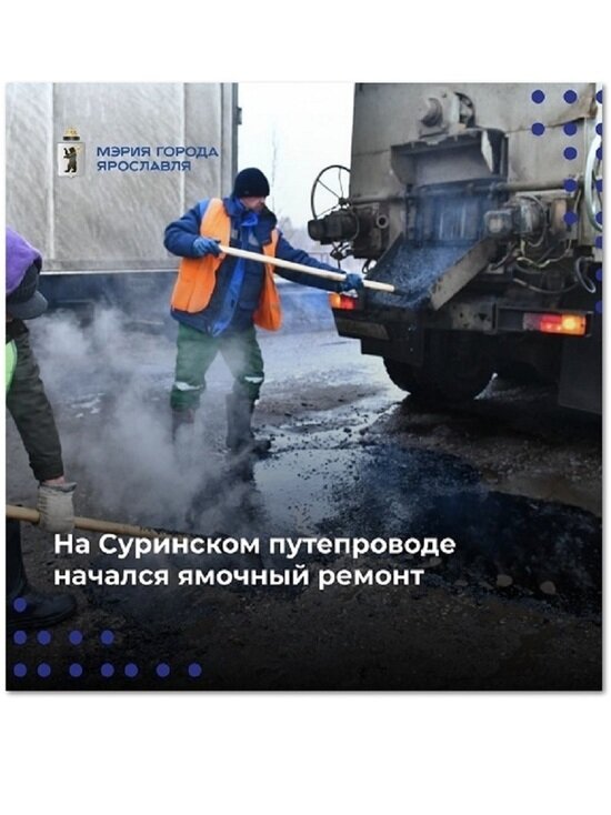 26 января на Суринский путепровод вышли дорожные рабочие. Их задача – залить ямы в дорожном покрытии асфальтобетонной смесью. Рабочие трудились в течение светового дня. В темное время суток выполнять такие работы запрещено. 27 января они продолжат свою работу. Ямы на Суринском пуутепроводе латали в ноябре. Но к январю ремонт-времянка развалился. Сейчас все выбоины заливают литым асфальтобетоном, которым можно производит работы в минусовые температуры. Всего на Суринский выделено 5 тонн асфальтобетонной смеси. По окончании работ на Суринском рабочие будут заделывать самые вопиющие ямы в других районах города.