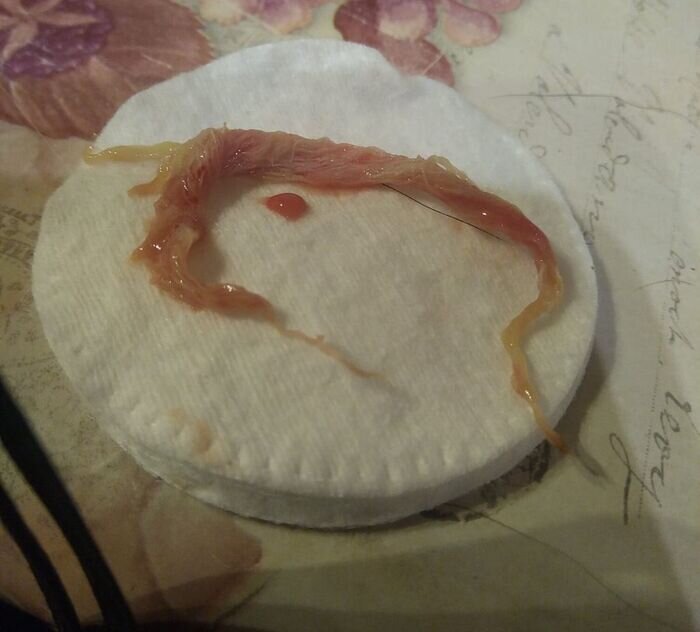 Москва. Никак у нашей подопечной драторизена Рафы шов на пузе после проведённой в сочинском отлове стерилизации не заживал, хоть и курсом антибиотики пили, и специальную мазь привязывали, и бак.посев сдали на всякую бяку, но то сукровица, то гной. И тут вуаля, оно таки полезло наружу! Салфетка марлевая, вернее, пока только её часть: Сея вещь, судя по всему, некрасиво забыта в брюшной полости у собаки при проведении стерилизации в муниципальном отлове, пока она моталась там по улицам. Предположительно салфетка подшита ко шву, причём руками не прощупывается, но выходной канал хорошо образуется именно на шве, и вся образующаяся там гадость выходит наружу. Потому в ближайшее время придется делать Рафе операцию с ревизией брюшной полости, смотреть, так сказать, глазами и руками и убирать всё это непотребство. И спасибо курсу антибиотиков, иначе бы давно развился перитонит. Но Рафа не унывает. Жизнь у годовалой собаки чудесная во всех смыслах, вокруг куча разных собак, с некоторыми типа Дара