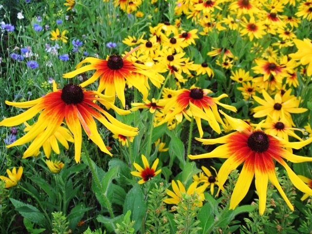 Рудбекия, красивый садовый многолетник, который нравится мне за простоту в уходе и долгое цветение. Первые цветы появляются в июне и украшают участок до самых холодов. Окраска цветов рудбекии варьирует от ярко желтой и до коричневатой, цветы словно маленькие солнышки на клумбе.