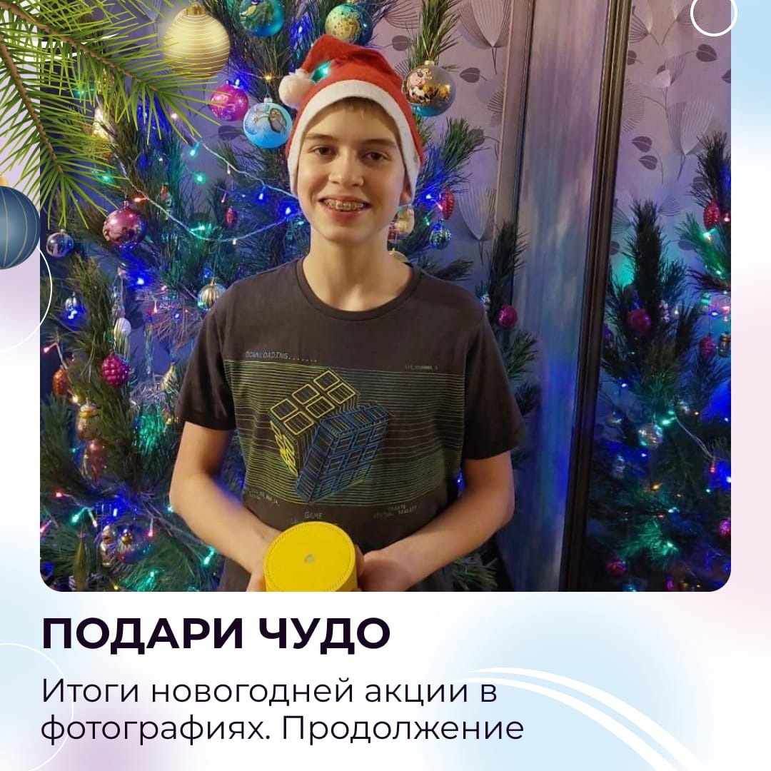 В ноябре мы запускали нашу ежегодную акцию "Подари чудо"🎁, принять участие в которой мог каждый. Весь декабрь наши подписчики отправляли и получали подарки и делились с нами своими фотографиями. Совсем недавно мы уже делились с вами некоторыми фотографиями, сегодня хотим продолжить😊 Огромное спасибо всем, кто принял участие в акции, спасибо нашим благотворителям, спасибо нашим подписчикам за доброту сердец! Мы очень ценим вашу поддержку и дорожим обратной связью от вас! Спасибо всем, кто поделился своими фотографиями, видео и тёплыми словами благодарности! Поделитесь, пожалуйста, в комментариях своими впечатлениями и готовностью и дальше принимать участие в подобных акциях💞 Стоит нам проводить акцию #подаричудо перед Новым 2024 годом?😉 Фотографии детей, получшивших подарки по акции #подаричудо: