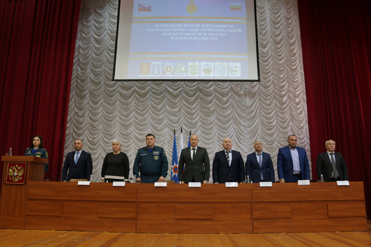 В актовом зале Северо-Кавказской государственной гуманитарно-технологической академии в городе Черкесске состоялось совещание по подведению итогов деятельности территориальной и функциональной подсистем Единой государственной системы предупреждения и ликвидации чрезвычайных ситуаций Карачаево-Черкесской Республики за 2022 год и постановке задач на 2023 год.