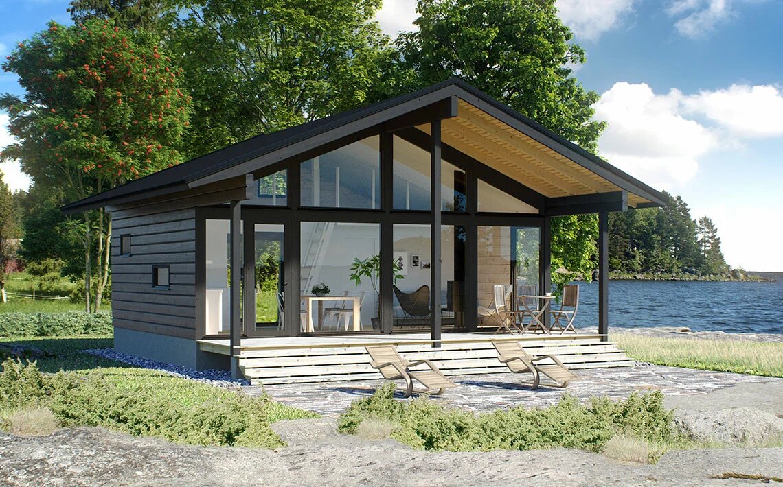 Привет! Сегодня мы поговорим про концепцию разумной достаточности на примере небольших домов. Согласно недавнему опросу ВЦИОМ, жить в загородном доме хотят более 45 миллионов российских семей. Как вы думаете, вы входите в эти 45 миллионов? Если вы читаете эту статью, то тема загородных домов вас определенно интересует. Мы собрали для вас подборку домов, которые с легкостью смогут стать вашей входной точкой в мир загородной недвижимости. Представляем вашему вниманию ТОП-5 проектов мини домов от 50 м2: №5. Проект Utö Технология: Клееный брус. Общая площадь: 49 м2. Utö — это небольшой дом, компактная хижина, дополнительное строение на участке, или дом для ваших гостей. Большие панорамные окна позволяют любоваться природными красотами, отдыхая в уютном кресле после насыщенного дня, готовя завтрак или обедая с близкими за общим столом. Планировка. Проект дома предусматривает небольшое крыльцо (2,5 м2) и крытую террасу (16 м2). Внутри загородного дома находится коридор, просторная кухня-го