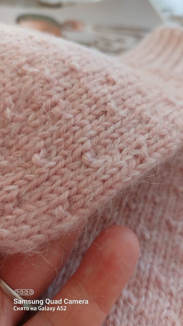 При ленточном методе с левого и правого края изделия лицевой гладью образуются две полоски. Они сшиваются посередине трикотажным швом.