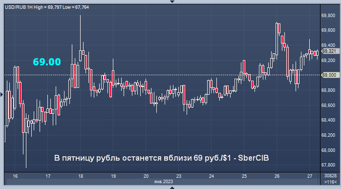 В пятницу рубль останется вблизи 69 руб./$1 - SberCIB Курс доллар/рубля на Мосбирже интервалами в 1 минуту Курс доллар/рубля на Forex интервалами в 4 часа Котировки нефти марки Brent могут подняться до уровня $88 за баррель на торгах в пятницу, считают аналитики SberCIB Investment Research. "Участники рынка опасаются, что с вступлением в силу (с 5 февраля) эмбарго на ввоз нефтепродуктов из России на европейском рынке дизельного топлива может образоваться дефицит. Пока Россия обеспечивает 40% импортируемого в ЕС дизеля", - отмечают аналитики в комментарии. Котировки ОФЗ в пятницу могут стабилизироваться около уровней четверга, полагают в инвестбанке. Также аналитики SberCIB считают, что отметка 69 руб./$1 соответствует краткосрочному равновесному значению рубля и в пятницу он останется вблизи этого уровня. MarketSnapshot - Новости ProFinance.Ru и события рынка в Telegram По теме: Курс рубля резко взлетел: Россия возобновит валютные интервенции с продажей китайского юаня Рубль укрепился