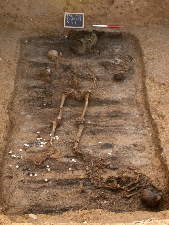 Тем не менее, почти 1800 лет назад князь погиб на поле боя. Когда в 2007 году в посёлке Торслунде, недалеко от Исхой (Дания), должны были снести здание школы, археологи воспользовались моментом, чтобы провести раскопки. Выкопав пару траншей через школьное футбольное поле, они наткнулись на группу могил, расположенных полукругом вокруг могильного кургана, от которого на поверхности уже ничего не осталось. Всего было обнаружено 27 могил римского железного века. Пять могил были детскими, одна принадлежала юноше, в трёх лежали взрослые мужчины и в одной взрослая женщина. В 17 могилах пол определить не удалось, поскольку от погребенных не осталось ничего, кроме зубов. Последней исследовалась могила внутри кургана, на глубине 2 м – как полагают, гробница князя. Над гробницей положили большие камни, чтобы грабителям было труднее до неё добраться. Это погребение сооружено примерно в 250 году нашей эры, оно самое древнее, но сохранилось лучше других, поскольку находится глубже. Скелет практиче