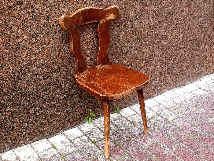 Мой дубовый стул без задних ног нуждался в мастере. Стул своим силуэтом напоминал Бонапарта, и я решила его подарить знакомому дизайнеру взамен на белый табурет, который тот на днях отреставрировал, выложил в сеть, и я сразу в него влюбилась. Я не могла дождаться, когда произойдет обмен, и однажды не усидела, поехала в мастерскую сама, прихватив стул. Дело в том, что у меня нет машины, и добиралась я на метро. Со стулом. Уже у турникета меня остановили: - Это стул? - Да, - говорю, - Я обычно езжу со своим местом. В вагоне я пристроила его в уголке. Смотрелся симпатично, так, что одна старушка чуть на него не присела. - У него шаткие ножки, – остановила я. На переходе Киевской стул влип в беспощадную фотосессию с подростками. - Ой, стул! – закричала девушка, когда я проносила инвентарь мимо. Пришлось уступить. Потом она "усадила" стул на скамейку, а на стул - меня, - и тоже стала фотографировать: - Скажите «сиськи» - у вас будет шикарная улыбка! Вас же не смущает это слово – «си-и-ськи!