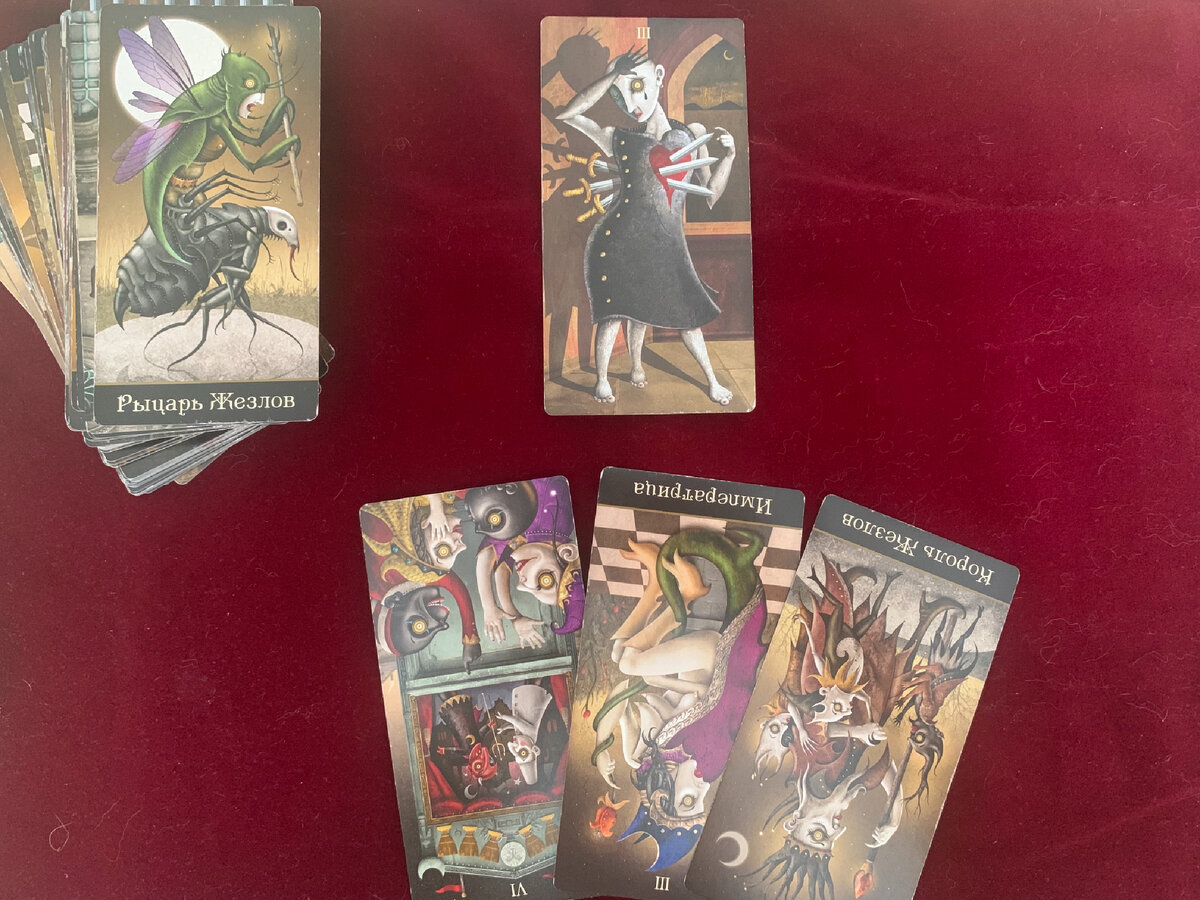 Здесь человек сам себя терзает проблемами, которые уже давно себя изжили, но вы продолжаете их за собой нести. «Помогите, мне плохо! Со мной так ужасно поступили!», для полной картины можно добавить всхлипов и жалостливое лицо к этим словам. Примерно такую картину отображает расклад. Но дело в том, что плохо вам было раньше, а сейчас это не актуально, нужно двигаться дальше, причём чем активнее, тем лучше. Здесь обида могла возникнуть из-за отвергнутости, из-за того, что хотелось быть вечно в памяти и сердца человека, но он выбрал двигаться дальше, а вы всё всхлипываете и вспоминаете, как плохо с вами обошлись. Не забывайте, что это тормозит, не даёт нам жить настоящим. Пора отпускать.