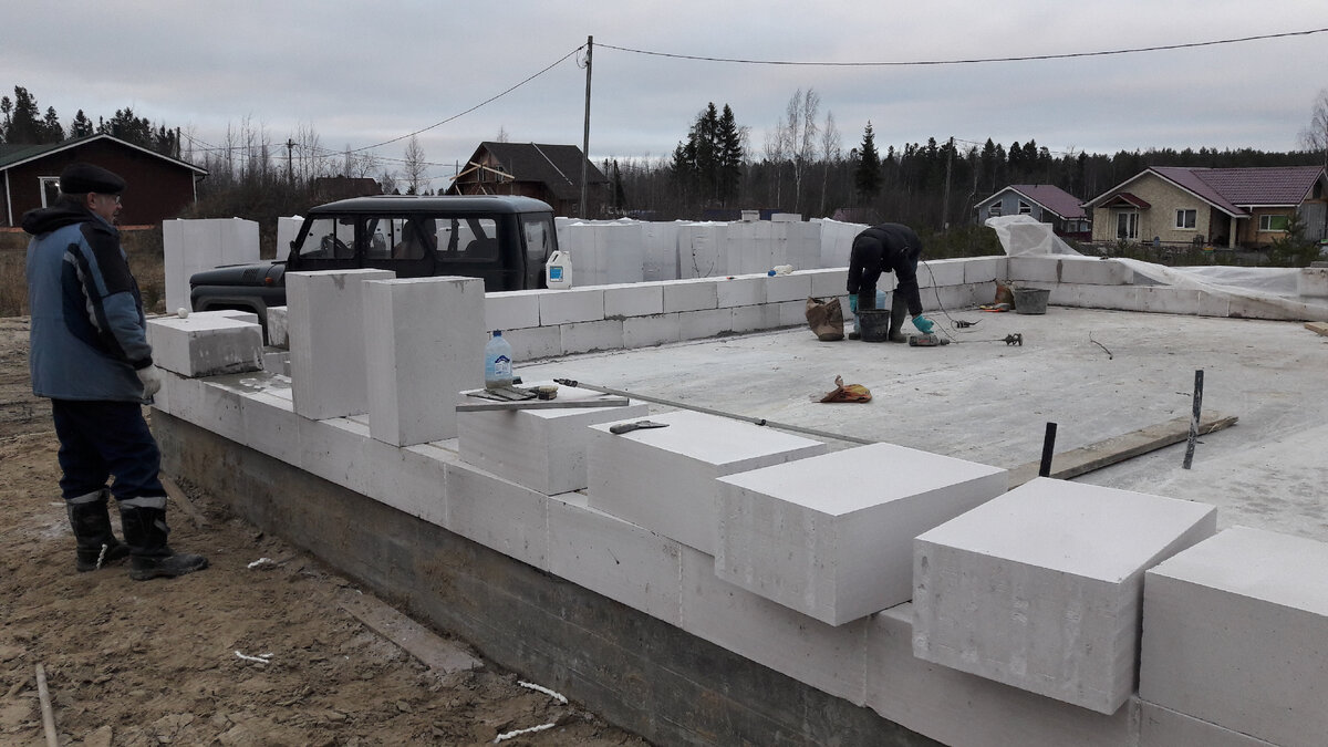 Всем, привет 🙋♂️ Второй ряд газобетона, я также решил сделать на раствор - клей для газобетона. Это я делаю, чтобы выровнять все стены дома в одну высоту. При укладывании второго ряда блоков, параллельно замазываю уложенную арматуру. Далее будем укладывать газобетонные блоки на пено-клей в баллонах. Быстро, удобно и экономит уйму времени, т.к. теперь раствор готовить не нужно. ... продолжение следует...
