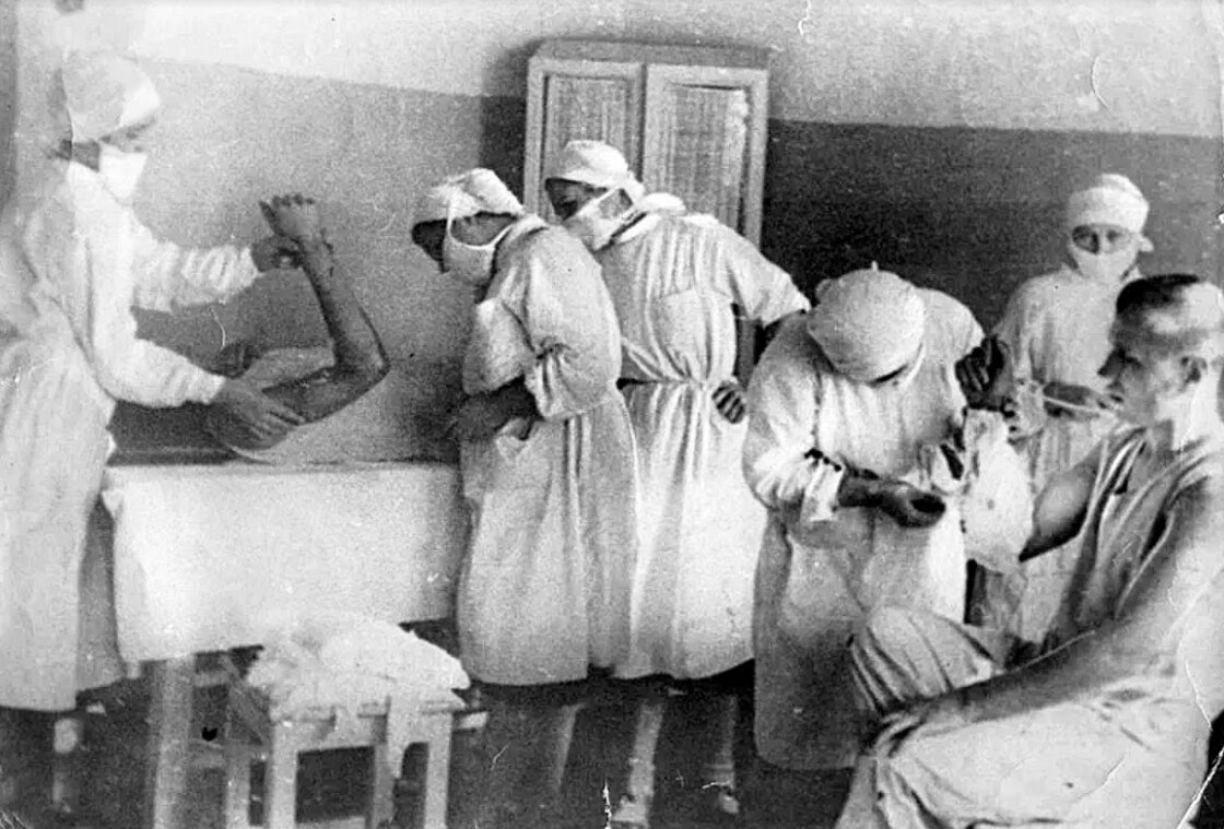 Она тихонько ойкнула и выронив из рук стакан с чаем, засеменила в ординаторскую, где спал дежурный врач Аркаша. Но не успела она до него добежать, как здание госпиталя сильно тряхануло, и посыпалась белая штукатурка с потолка. Нюра от страха села на пол и прислонилась к стене, как затравленный зверек. И тут началось. Послышался свист множества приближающихся снарядов, рассекающих на перегонки утренний влажный воздух. А потом все слилось воедино, в раскате накладывающихся друг на друга взрывов. Посыпались с громким звоном осколки разбитых окон. Госпиталь располагался в нескольких корпусах. Сначала загорелась крыша хирургии в главном здании, а потом запылахало и здание терапевтического отделения. Минут через тридцать, артобстрел прекратился, но ад продолжался. Крыша здания горела. Больные подняв невообразимый шум, в панике пытались покинуть здание госпиталя. Нюра присоединилась к ним и в дыму столкнулась с Аркашей. Тот схватил ее за руку и прокричал ей на ухо, чтобы она выводила больных из палат на улицу. Нюра кивнула и забежала в первую попавшуюся палату. Окно там было разбито, внутри по всей видимости взорвался осколочный снаряд. Пациенты лежали в кроватях и на полу в разнообразных позах, кто убитый, кто раненый. Она подбежала к ближнему бойцу, лежащему на полу, у него были посечены осколками ноги, и попыталась его поднять своими хрупкими, тонкими, девичьими руками. Раненый застонал от боли и Нюра рухнула вместе с ним обратно на пол. Как его спустить вниз, со второго этажа, она не представляла. Тогда она подбежала к еще одному раненому, тот прохрипел: – Войн… Война началась..,– и замер. Нюра заплакала от бессилия и отчаянья. Больше она ни кому не могла помочь. Тащить на себе огромных мужиков она просто физически не могла.