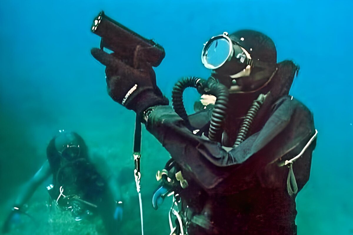 Прицел содержит тритиевые элементы для удобного наведения в темноте. Эту функцию трудно недооценить, когда боевой пловец выполняет задачи ночью и под водой. Что интересно, тритиевый прицел находится на блоке стволов, а сами блоки, как мы знаем, при перезарядке заменяются.