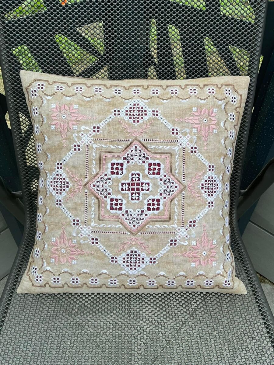 Всем добрый день. И вышивающим, и не очень. Сегодня хочу вам рассказать и немного показать крайне интересную технику вышивки - хардангер. Что это за зверь? Если простым языком, то сначала вы делаете разные стежочки на ткани, потом подрезаете и выдергиваете часть ниток между этими стежочками, а потом обвиваете мулинешными нитками оставшиеся после выдергивания нити. То есть, это примерно тоже самое, что и пэчворк. Вы берете целый кусок ткани, режете его на лоскутки, а потом эти лоскутки обратно сшиваете. И только попробуйте сказать - "на фига"? Рискуете получить иголкой в жизненно важный орган. )) А теперь - та-да-а-ам ... его величество Хардангер. Все три работы выполнены по схемам Мамен Ариас. Это самый известный ... и пожалуй, единственный на сегодня ... разработчик схем для хардангера. Живет и творит Мамен в Испании, в городе Малака. Ведет блог: https://carpacar.blogspot.com/ Также есть интернет-магазин, где можно купить все ее схемы. Но ходить туда не рекомендую, так как шок от оби
