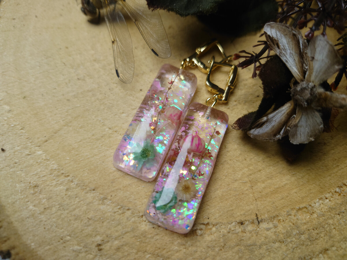 Очень веселые серьги с блёстками и яркими цветами. Цена 900