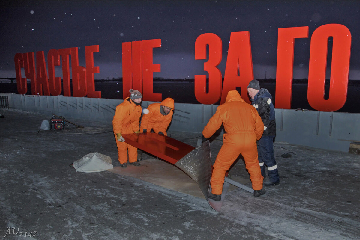 В декабре губернатор Д. Махонин поручил перенести столб, который находится за самым известным в Перми арт-объектом. Чем ещё губернатору заниматься? Замечу, что на столбе висят фонари. В конце января СМИ написали, что власти Перми наконец разобрались со «Счастьем не за горами» – переносить будут буквы, а не столб... Сразу начинаешь понимать, чем два месяца в сложное для страны время занималась чиновники. Браво!!! Когда я итожу то, что прожил и размышляю: Есть счастье или нет? Я вспоминаю одно и то же: Пермь, набережная, рассвет! Все пермяки любят гулять вдоль Камы. В 2009 г. на набережной около Музея PERMM установили арт-объект Бориса Матросова «Счастье не за горами». Общественность восприняла появление красных букв с восхищением. А когда весной их затопило, настоящее счастье захлестнуло город и арт-объект стал символом Перми. После выхода на экраны фильма «Географ глобус пропил» о пермском счастье узнал весь мир... Всё шло своим чередом. Весной счастье затапливало, иногда буквы отвалив