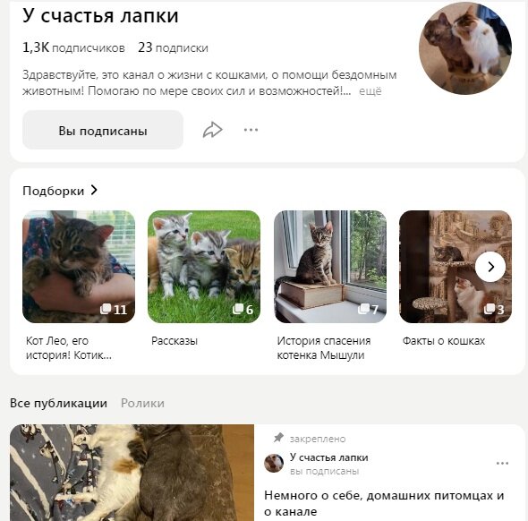 Когда списки ТОП составляет Искусственный Интеллект или Его Величество Алгоритм, всё проще. Просто выкладываются карточки публикаций, максимум добавляется название рубрики, типа "Это интересно" или "Набирает популярность" И одно что при этом что популярность набирает канал где 100500 подписчиков)) Мой ТОП 5 каналов, составлен из моих друзей, о каждом я стараюсь сказать хоть пару слов, поэтому вы заранее можете решить будет ли вам интересно. Я понимаю что наши вкусы могут не совпадать. Но одно могу сказать точно, нет среди моих друзей ни блатных, ни плохих людей. Рекомендую всех. У счастья лапки Почти в каждой семье нашей страны живет пушистый или пернатый друг, нет я не в обиду хамелеону и черепашке и рыбкам. Просто хотел сказать о котиках, а оно вот как пошло) По отношению к животному очень легко определить хороший ли человек перед вами. У Натальи живет Три прекрасных котейки и о них, в том числе, она рассказывает на канале Как умилительны котики, даже когда делают свой знаменитый КУ