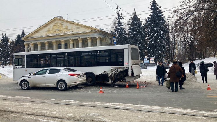 Водитель сбил пешехода и врезался в автобус около ДК имени Горького в Новосибирске