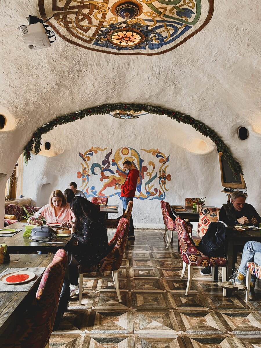 Самое важное в Большом Сочи — это медитировать у моря или в горах. Все дни и дороги сводятся к этому. По пути стоит попробовать пару-тройку блюд. Об этом мой гид по Красной Поляне: куда пойти, что попробовать и зачем вам это нужно. Важное заведение в деревне - "Яблоки печем". Оно стоит того, чтобы забраться на крутой холм. Внутри - бежевые сводчатые потолки, покрытые русской традиционной росписью. Ресторан называет себя современной деревенской кухней. В меню - подтверждения этому: каша в горшочке, утка в апельсинах из печи, форель, маринованная в красной капусте; печеная свекла с козьим сыром и прочее. Советую попробовать краснополянский чай - это травяной сбор с мятой, чабрецом и манжеткой. После пары чашек вкус становится знакомым. Захватите упаковку сбора в любом сувенирном магазине, чтобы пить его через пару месяцев дома и ощущать горные флюиды на расстоянии. Заканчивала свой день рождения в Joe Tribbiani Pizza. Дружественные соседи и продолжение Surf Coffee в одном здании. Готовят