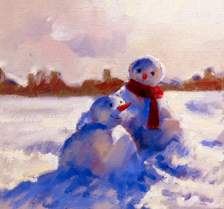 Сказка-притча в 4-х частях Часть 3. Любовь – это право и обязанность пер… (Из черновой рукописи трактата XVIIIв., найденного в заброшенном немецком замке) . Казались короткими долгие зимние ночи и хотелось укоротить и без того краткие дни. Снеговики ощущали мирную радость своего соединения, расставались лишь с рассветом, зная, что завтра увидятся вновь. В это утро, казалось, все было как прежде, лишь солнечные лучи, преодолев прежнюю робость и нерешительность, вдруг пробились как-то сразу сквозь утреннюю мглу и смело проникли в заснеженные дворы… Снеговик почувствовал в сердце тревогу, и, уходя, он оглянулся на подругу, она, улыбаясь, махала рукой, и прежнее спокойствие вернулось к нему. Заснул снеговик сразу, только закрыл глаза. Ему снились далекие звезды, и он поднимался к ним, взяв за руки подругу и увлекая за собой. Они шли, холодный добрый ветер обдувал их тела, звезды казались все ближе и доступней, и уже ощутима была их прохлада. Но ближе других оказалась одна звезда, самая яр