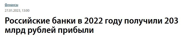 Банк России опубликовал оценочный показатель прибыли банковского сектора в 2022 году - по итогам года она составила 203 млрд рублей. Много это или мало? Все познается в сравнении. В 2021 году прибыль российского банковского сектора была рекордной и составила 2,4 трлн рублей. В этом году она почти в 12 раз меньше. При этом по итогам 1 полугодия сектор показывал убыточность (убытки превышали 1,5 трлн рублей). Но во втором полугодии начал постепенно выходить на прибыльность. Например, только по итогам декабря 2022 года прибыль банковского сектора составила 342 млрд рублей (в 1,7 раз больше, чем по итогам всего года). Свою финансовую отчетность уже 3 месяца подряд раскрывает только Сбербанк - он вышел на прибыльность в октябре, и по итогам года заработал 300 млрд рублей чистой прибыли (для сравнения, в 2021 году - 1,2 трлн). Как сообщает ЦБ, доля прибыльных банков составила 77%, по количеству - это 270 финансовых учреждений. Остальные остаются убыточными. Каковы мои выводы из этих цифр? Ка