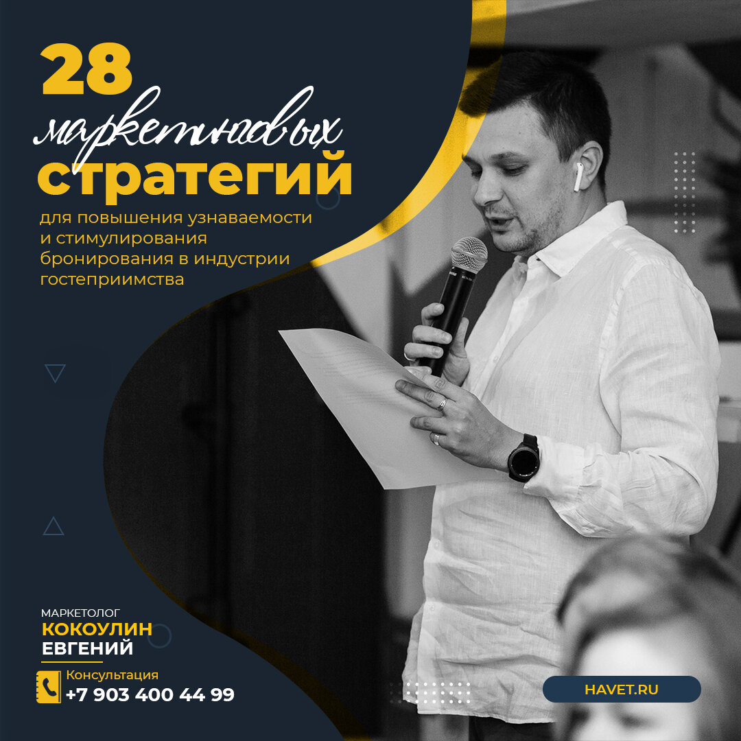 Как вы видите, существует ряд маркетинговых стратегий, которые вы можете использовать, чтобы добиться большей узнаваемости, продвинуть свой бренд и получить больше бронирований. Посмотрите, с чего вы можете начать самостоятельно, и не бойтесь нанять компанию в помощь, например нас, HAVET MARKETING чтобы поддержать и усилить ваши возможности. Результаты ваших маркетинговых действий в отеле должны со временем только расти. Главное начните делать и все у вас получится!