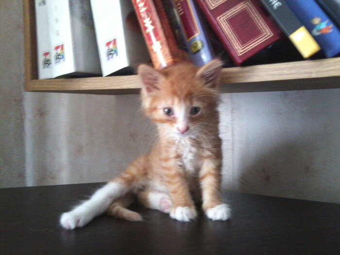 Вблизи этот страшный хищник выглядел достаточно жутковато. На крошечном тщедушном тельце кишели сотни блох. Глазки едва открывались, - то ли от грязи слиплись так, то ли от гноя. Вся мордочка, включая крошечный носик и ротик, вместо рыжей, была черной от той же самой грязи. При этом залепленный носик, похоже, не мог дышать… Но на боевой дух котенка все это, похоже, ни капли не повлияло… При моем малейшем движении это существо давало мне понять, что едва сдерживается, чтобы не сожрать меня….