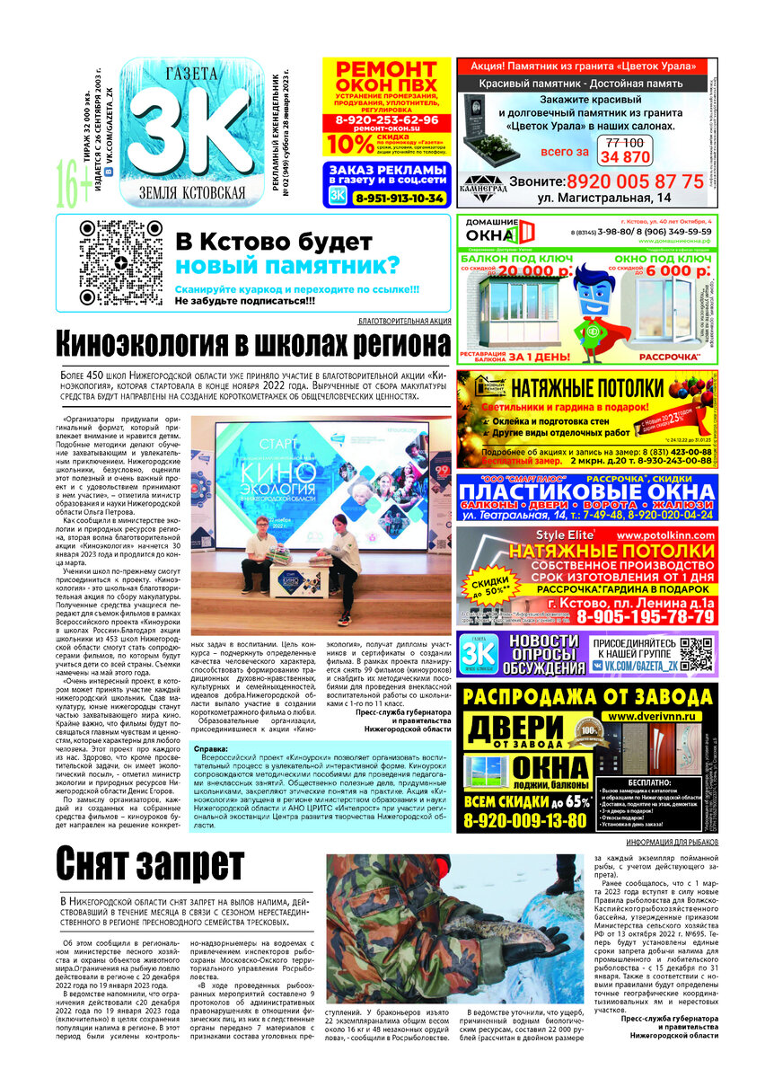 Газета "ЗЕМЛЯ КСТОВСКАЯ"№ 2 (949) от 28.01.2023г.