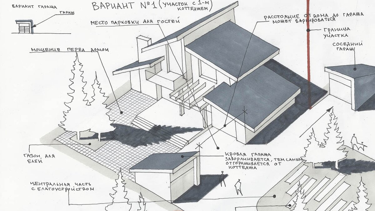Например, у больших домов есть отдельные гаражи, либо смежный с домом гараж. Также важен комплект чертежей: проектируем ли дизайн, отделку. Многое в сроках зависит от согласования заказчиком эскизов. Вариантов может быть достаточно много, часто их надо не просто нарисовать и получить ответ уровня «нравится – не нравится», а вычертить и сравнить площади