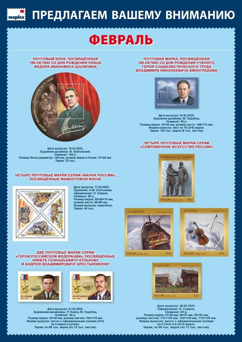 План выпуска государственных знаков почтовой оплаты за февраль 2023 года. #филателия #анонс
