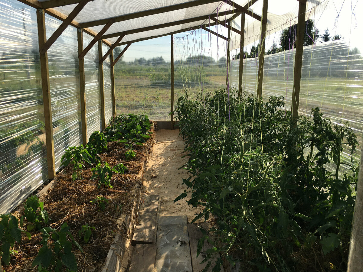Невозможно не вспомнить шикарный сорт, лучший вкус сезона 2022 - томат Мятежный звездный истребитель (Rebel Starfighter Prime. Автор Расс Кроу). Я была наслышана об этом сорте и выращивала его с ярким предвкушением. Было интересно все - от того как он растет, до массы плодов, сроков созревания и вкуса. Рассада высаживалась в парник поздно в середине июня. Я уже рассказывала, что в 2022г мы делали с нуля огород и теплицы. Поэтому высаживали все растения по готовности посадочных гряд. У меня росло 2 куста этого сорта. Росли они на самом жарком и солнечном месте, по соседству с Росомахой и Сливкой гурман. Куст у Истребителя тонкий и звонкий, высокий, лист пониклый. Это дает полную возможность сажать по два растения в лунку. Я вела в 2 ствола, однако легко можно и больше. Растение высокое 2 метра и выше. Пасынки дает активно. К сожалению, одному кусту кто-то подгрыз корни и растение погибло. Но один куст остался и плодами порадовал. Сорт достаточно устойчив к фитофторе и жированию. Достато