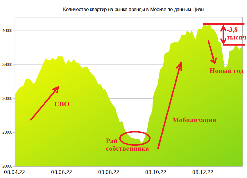 В 2022 году рынок аренды был накрыт двумя волнами кризиса, а с 2014 года волны кризисов накрывают рынок аренды на постоянной основе. На сегодняшний день в Москве экспонируется порядка 37,2 тысяч квартир, а динамика объема предложения выглядит следующим образом: Хорошие новости в стране всегда сокращает объем предложения, ну а тревожные вызывают новую волну кризиса. Если не будет никаких плохих новостей, то я уверен, что рынок придет в нормальное состояние, ну а при завершение конфликта имеется большой потенциал для роста арендных ставок. Почему роста? С 2014 года ставки на рынке аренды в лучшем случае оставались без изменения, а по некоторым объектам упали. Вместе с тем, с 2014 года в цене выросло все, ну а самое главное с 2014 года в России серьезно выросла заработная плата. По данным Госкомстата средняя заработная плата в стране в 2014 году была 32'495 рублей, а в 2021 году уже 57'244 рублей, т.е. рост в 1,76 раза. Да, я согласен, что данный рост заработной платы во много обусловлен