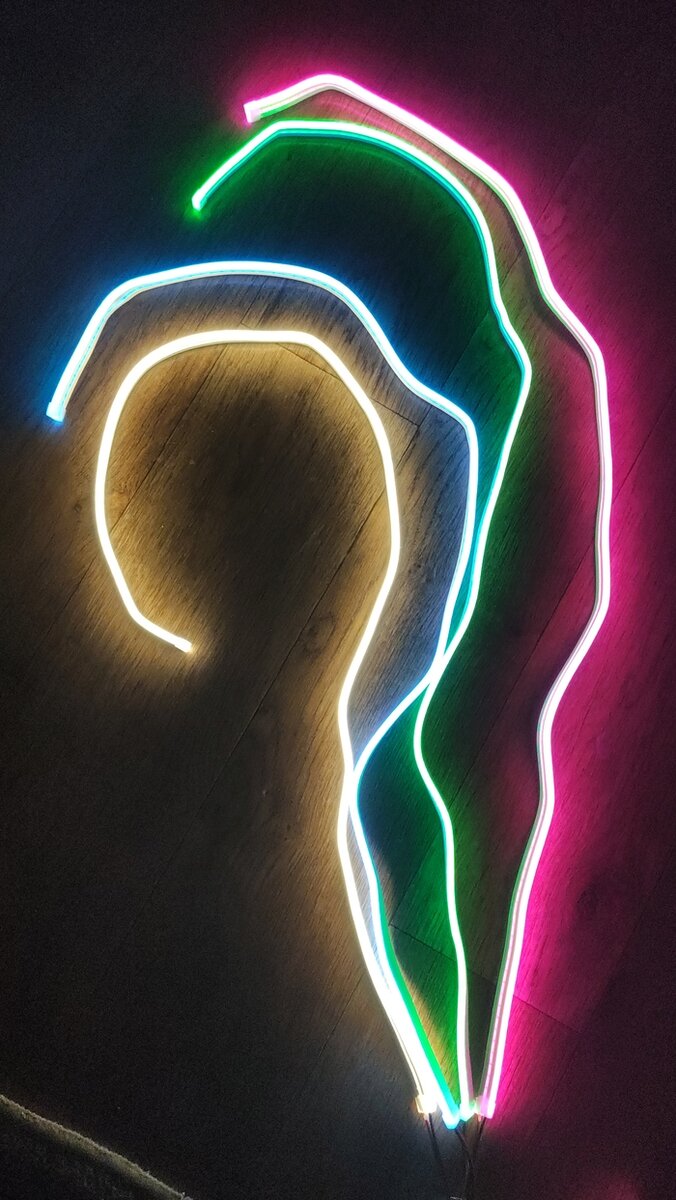 Захотелось мне как-то сделать светильник на стену из гибкого неона (который на самом деле светодиодная лента с рассеивателем). На работе были ненужные куски акрила для основы, и лазерный резак для гравировки контура светильника. Полистав али, нашел подходящие ленты с питанием от 5 В, метр длиной. Заказал 4 штуки разного цвета, и спустя пару недель, в дико мятой коробке, они оказались у меня: Дальше появился вопрос:А какую вывеску собственно делать?". Для начала желательно было что-то простое, одной линией, и в метр длиной, что б не резать неоновые ленты. Поделившись мыслями с сестренкой, решено было сделать ей в подарок кота. Нашел и нагло украл в интернете фотку готового светильника: Дальше нужно из этой фотографии получить файл для резки. Закидываем фотку в CorelDraw и конвертируем в однобитный формат, вручную задав порог по яркости (этот этап не сохранился, тут просто похожее для примера): Инвертируем цвета и трассируем рисунок по центральной линии. Делаем линии толще, добавляем кон