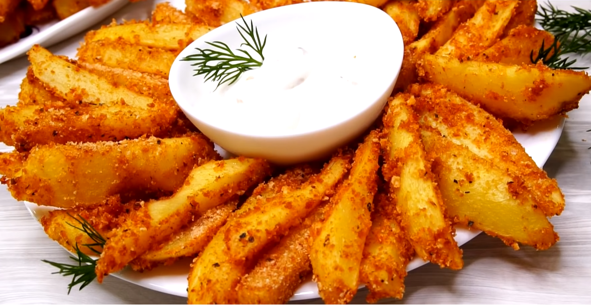 Сегодня хочу поделиться с Вами рецептом картофеля в хрустящей панировке. Картофель в хрустящей панировке. Его у нас обожает вся семья без исключения и неудивительно ведь он такой аппетитный, что его хочется есть и есть. Готовлю я его вместо картошки фри. А готовится он так просто, что справится даже ребенок. Рецепт: