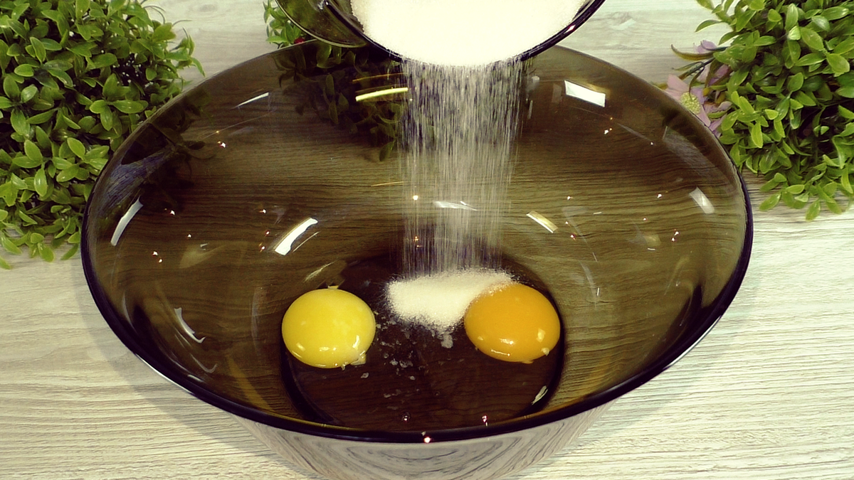 1 ч. л. сахара с корицей (0.5 ч. л.) для посыпки Смешать в миске яйца, щепотку соли, сахар. Я сахара добавляю 100 г выпечка получается сладкая. По желанию количество сахара сокращайте. Добавляем ванилин или ванильный сахар, а можно пропустить этот шаг. Добавить масло растительное. По желанию замените растительное масло растопленным сливочным. Добавить творог (у меня 5 %). В этом рецепте я творог не измельчаю, оставляю как есть, просто перемешиваю.