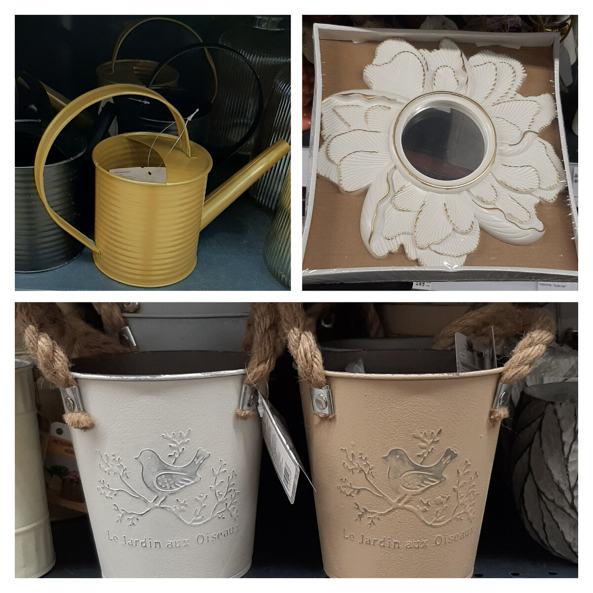 Зеркала, кашпо, лейка, изделия из дерева. Для каждого найдутся свои оригинальные предметы интерьера. Зеркало "Цветок". Цена 149 руб. Декоративное металлическое кашпо "Прованс". Цена 149 руб. Металлическое кашпо " Country". Цена 199 руб. Зеркало декоративное "Солнце". Цена 199 руб. Настольный органайзер. Ящик декоративный, 270×140×245 мм. Цена 199 руб. Лейка интерьерная, представлена в чёрном и золотом цвете. Цена 249 руб. Органайзер, расцветка в ассортименте. Горшок для цветов. Цена 199 руб. Керамический горшок для цветов "Тюльпан". Цена 299 руб. Настольная доска для записей. Цена 199 руб. Спасибо всем за внимание! Желаю приятных покупок! До новых встреч!)