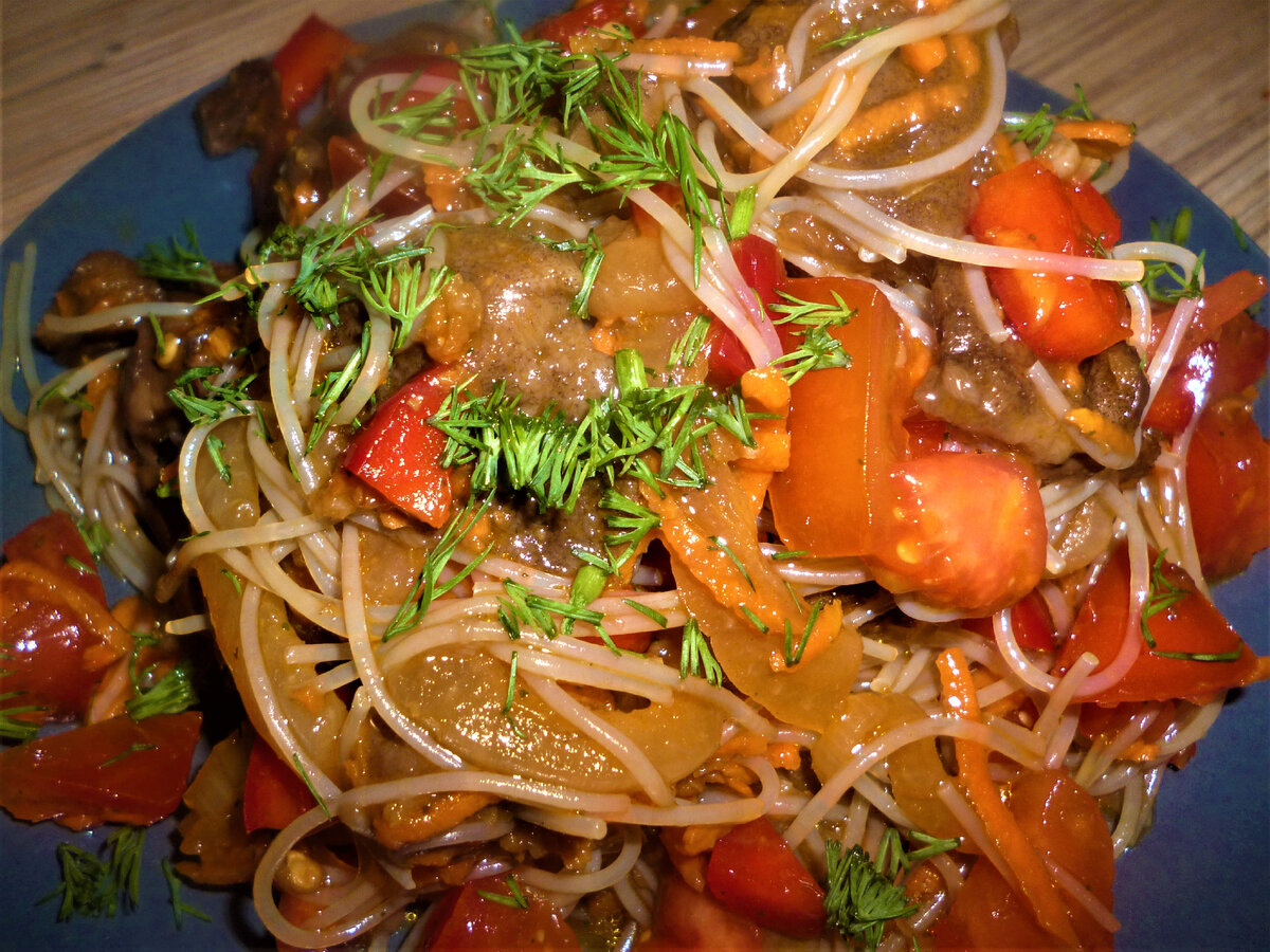 Фунчоза с грибами и овощами. Пришлось сразу повторить на "бис".