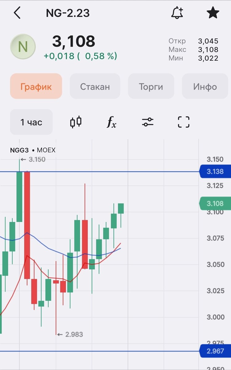 26 января в 22:00мск тренд сменился на восходящий и пока удерживается. С момента разворота было движение вверх на 110 шагов, это примерно +13% к вложенным средствам, но затем цена пошла в откат на восходящем тренде. Ждём развития событий Закрытие часовой свечи выше 3,138$ = подтверждение восходящего тренда и обновление данных по смене тренда в шорт Закрытие часовой свечи ниже 2,967$ = разворот в нисходящий тред Будьте крайне осторожны с этим инструментом! Стоимость шага цены составляет 0,147% к вложенным или от них, в зависимости от верности сделки. Для простого понимания, изменение цены на 1$ = 134% вложенных денег Ссылка на мой ТГ канал👇