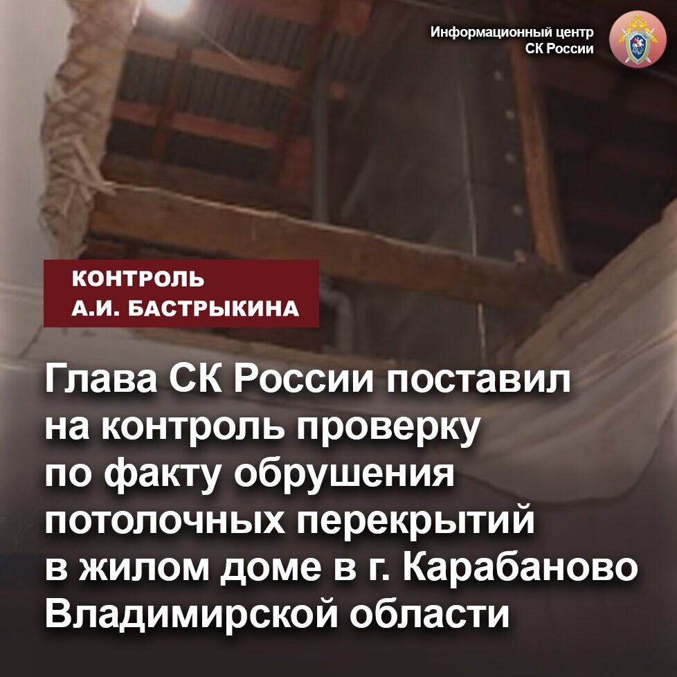 Глава СК России поставил на контроль проверку по факту обрушения потолочных перекрытий в жилом доме в г. Карабаново Владимирской области