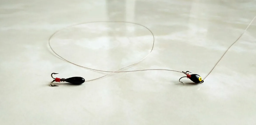 - Верхняя приманка меньше по размеру и легче по массе, чем нижняя