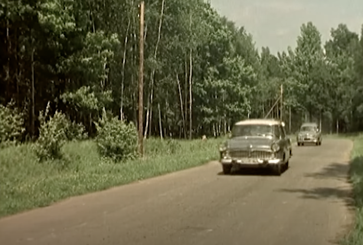 Труппа Наташи уезжает в аэропорт Жданова, а она решает ехать не в Москву, а в Братск. Кстати от гостиницы московских аистов увозят на автобусе РАФ-251. Он как ГЗА и ПАЗ был построен на базе грузовика ГАЗ-51, но в отличие от своих собратьев не имел копотной схемы. Правда кузов был тоже деревянным.