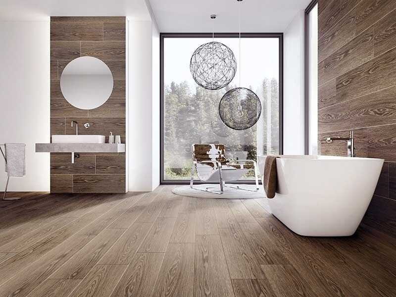 Зато количество видов керамогранита, имитирующего дерево, поистине неисчерпаемо. Это может быть керамогранит, неотличимый от цельного массива - "под сосну", "под дуб", "под лиственницу", "под кедр", не говоря об имитациях экзотических пород вроде красного дерева. Также керамогранит может имитировать необработанные доски, придающие даже городской квартире вид уютного сельского жилья, разнообразные виды паркетов и даже мозаику. Все это позволяет использовать керамогранит в любом интерьере - от неизменно актуальной классики до "ретро", от интерьеров в духе Прованса до скандинавского стиля. Он имитирует не только цвет натурального дерева, но и его структуру, превосходно сочетаясь с гармонирующими с деревом материалами - обычной керамической плиткой, бетоном, сталью, штукатуркой и кирпичом, и, разумеется, с натуральным камнем.