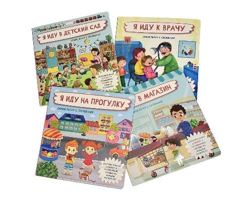 мальчика Якоба. Их очень большое количество: про чувства, полезные привычки. Мы рассмотрим книги про окружающее ребенка пространство. Книга про детскую площадку научит ребенка как правильно играть с другими ребятами, как вести себя на прогулках, что нельзя гулять без присмотра взрослых. Вместе Якобом ребенок первый раз пойдет в детский сад, легче адаптируется к новой обстановке, узнает как все устроено в детском саду. С Якобом в поликлинике малыш перестанет бояться врачей, узнает как проходит осмотр в поликлинике. Вторая красочная подборка очень понравилась моей дочке - кни