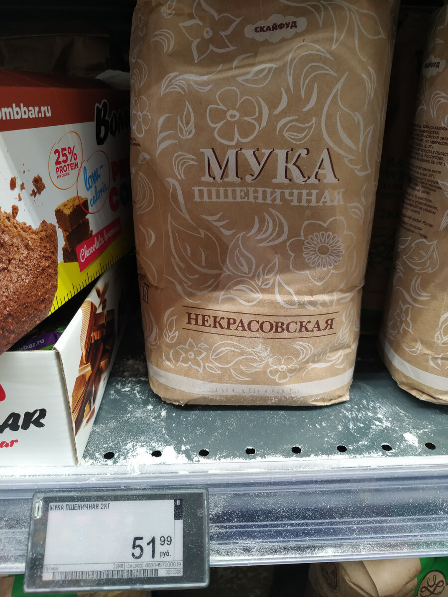 Купила в "Перекрёстке" муку - 2 кг по цене 51,99. Такого же объёма "Макфа" стоит 129 рублей. В чём разница? В наименовании сорта. "Высший" в два раза дороже "Первого". А по вкусу выпечки разницы совершенно никакой. Так зачем же переплачивать? Конечно, бывают моменты, когда на полках одна "Макфа", но ведь её специально ставят на более видное место. А дешёвую муку - на нижние полки. Много пактов с дырками, мука высыпается от одного прикосновения к упаковке. Но неповреждённую можно найти. Или, в крайнем случае, можно взять пакетик в отделе овощей и положить пакет с мукой в него - я так всегда делаю. Взяла ещё ванильный сахар для заварного крема. Тут выбор для меня очевиден: Другие не очень нравятся, этот даёт наиболее яркий и ближайший к натуральному вкус. А вообще, интересно, почему в рецептах крема пишут - ванильный сахар 10 граммов, а в магазине пакетики только по 8 и 12: